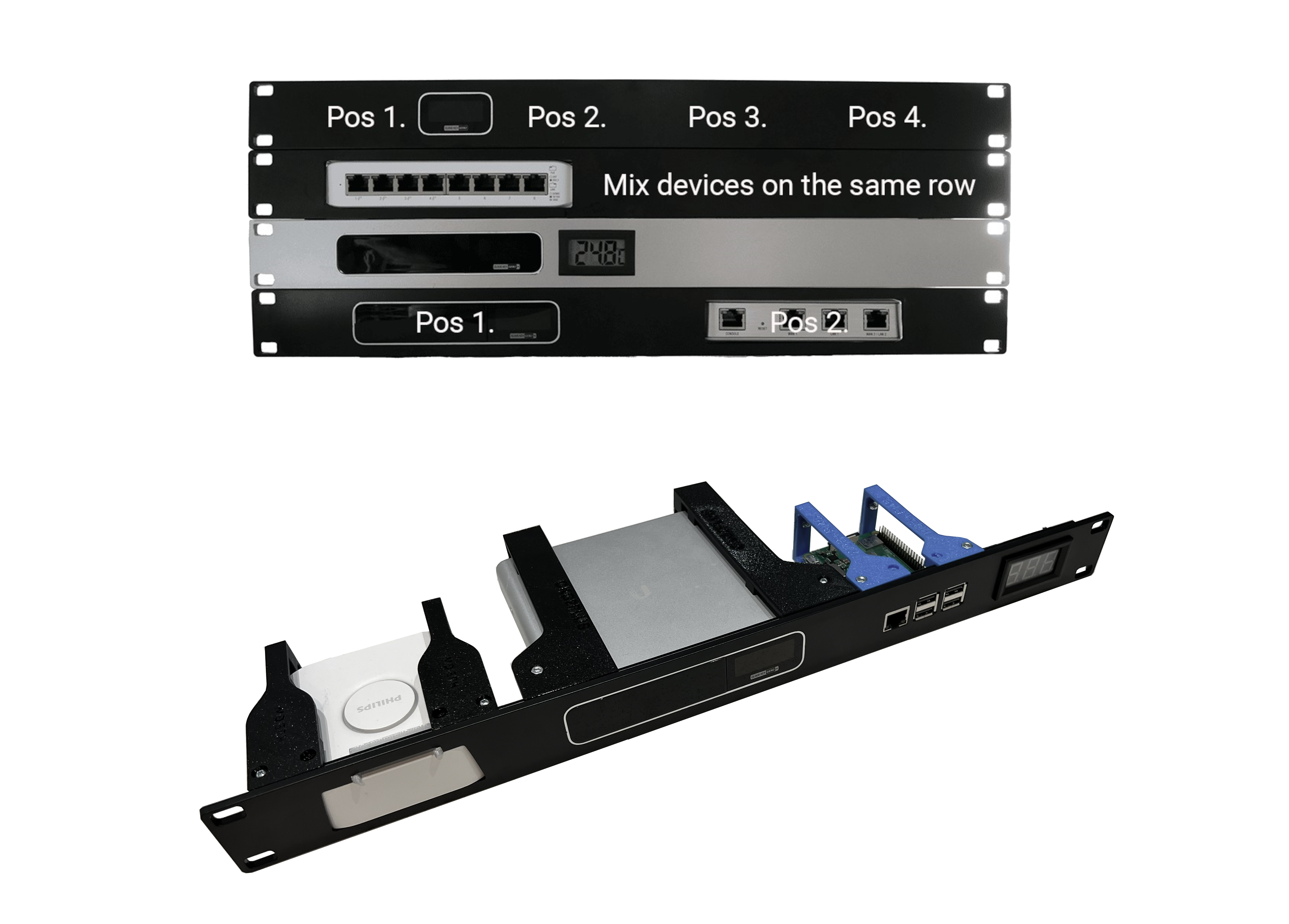 Monter utstyr som ikke er beregnet på rackmontering i rack! Vi tilbyr en formstøpt stabil front med CNC-frest hullbilde og en 3D-printet konsoll på baksiden av frontpanelet som gir deg mulighet til å montere utstyr som i rack som fra begynnelsen var ment for stasjonær plassering. Vi har ca. 300 ferdige enheter, og antallet vokser hele tiden. Hvis du ikke finner utstyret du vil installere på listen, kan du kontakte oss. Hvis det er et vanlig produkt, kan teamet vårt utvikle en løsning innen ca. 2 uker. Hvis det er et unikt produkt, kan du sende oss en 3D-CAD-fil, så produserer vi en konsoll for deg. OBS! Panelet leveres ikke med fysiske enheter. Mangler du en modell? Ta kontakt med oss, så ordner vi det.
