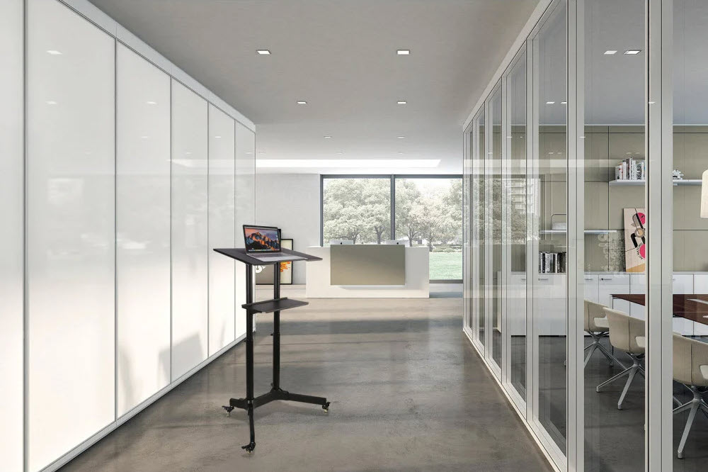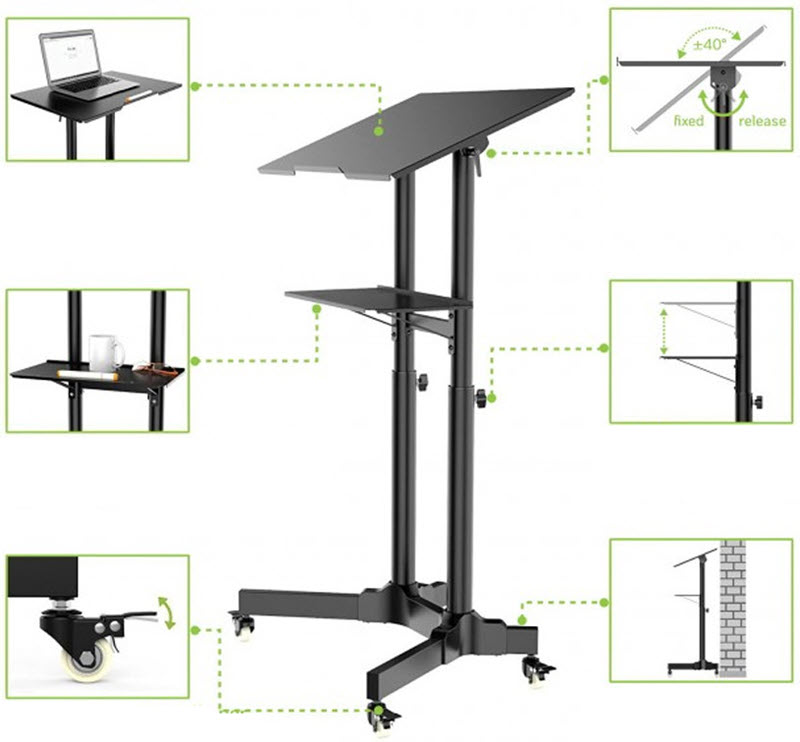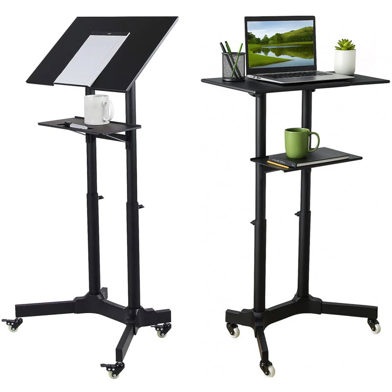 Ideell som talerstol, podium, bærbar PC-stativ, bærbar PC-arbeidsstasjon, med en kompakt plassbesparende base.
