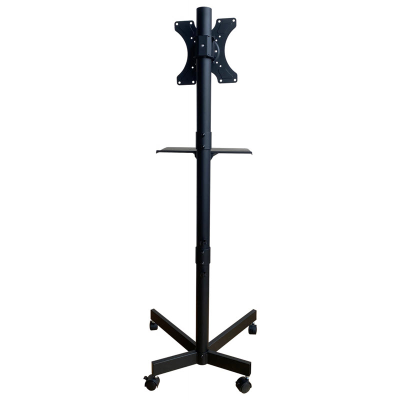 Enkelt sort skjerm stativ med hjul og hylle. Beregnet for skjermer 32"-60" og hele 40kg Les mer
