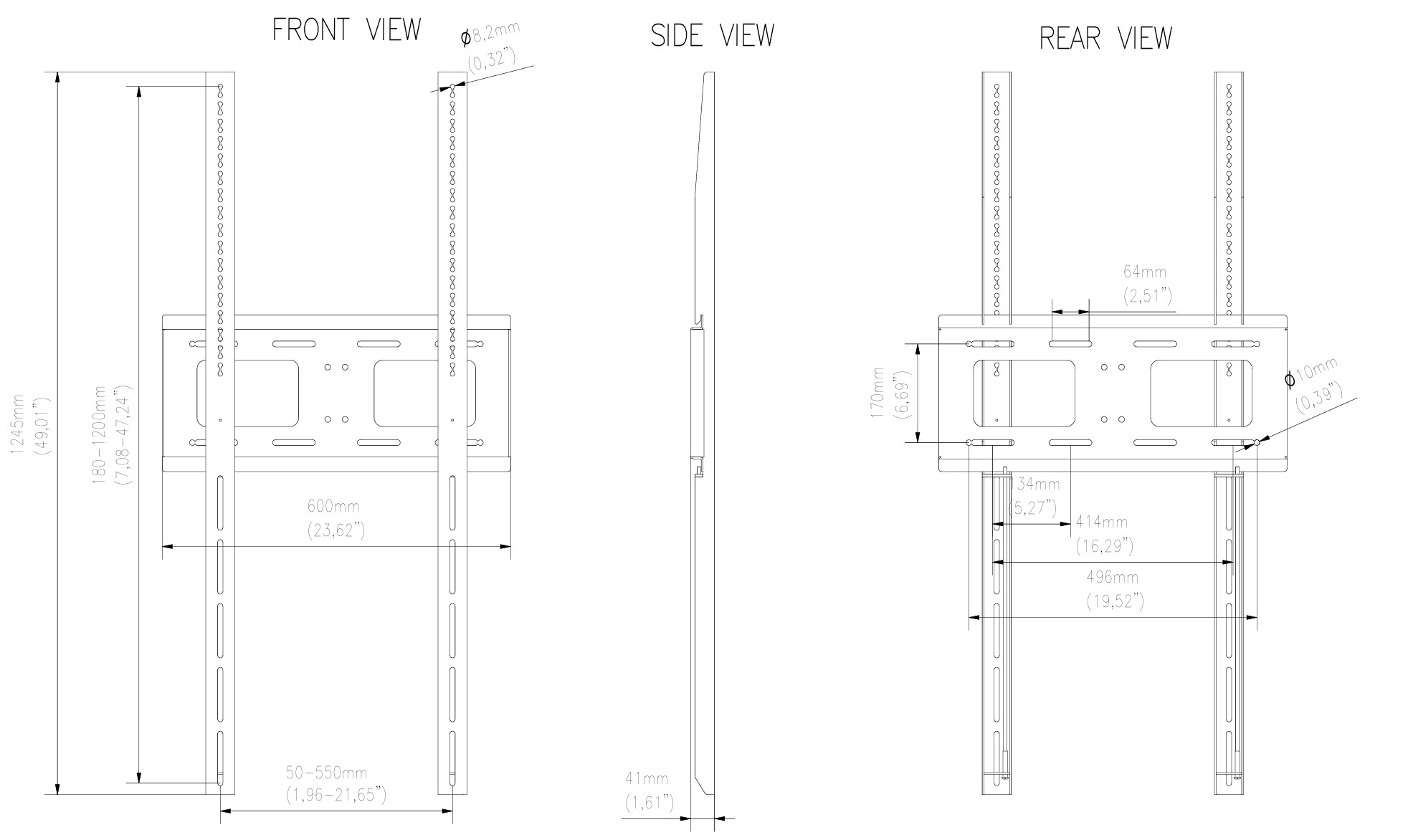 Designet for praktisk veggmontering av skjermen. Dette er et robust flatt veggfeste som gir unik funksjonalitet med den minimalistiske designen. Den enkle installasjonen gjør den svært enkel å bruke på alle typer veggflater. Kan brukes både som frittstående feste og som en komponent for andre strukturer, inkludert konferansevogner eller takfester. Skjermbeskyttelse mot fall og robust finish kombinert med moderne design gjør det mulig å bruke festet i konferanserom, venterom eller fellesarealer.
