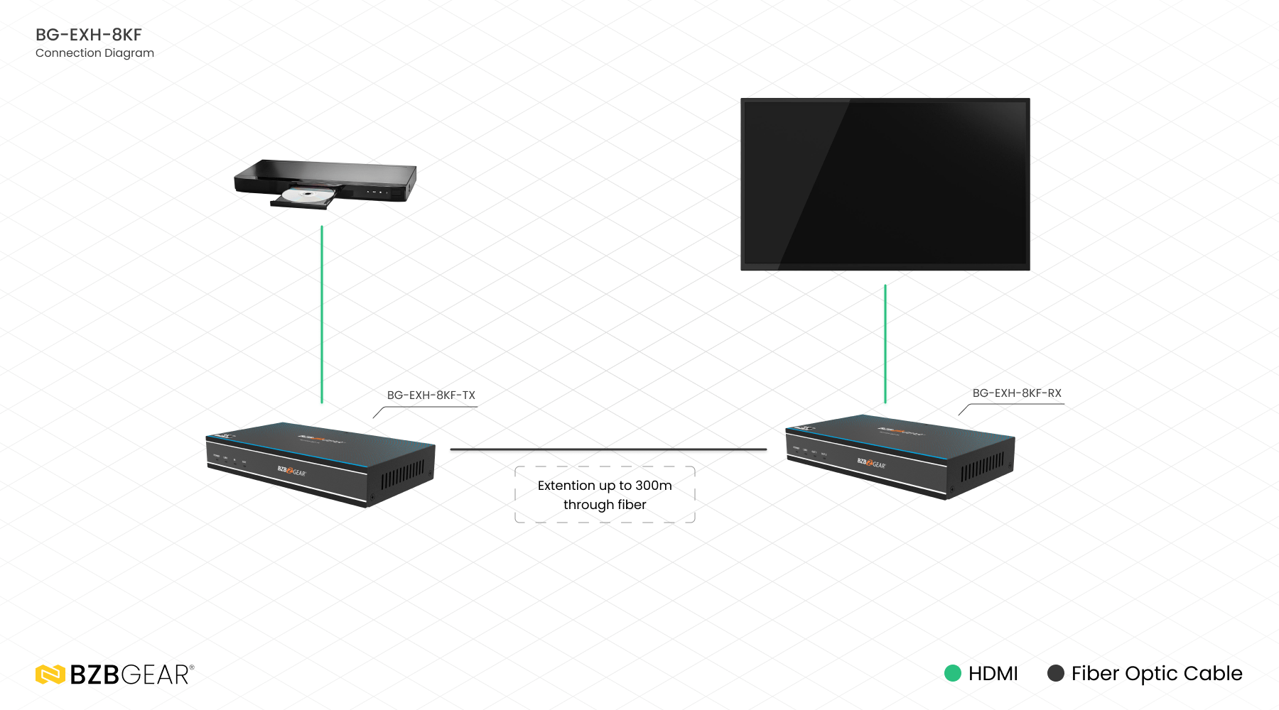 Enten du er gamer, hjemmekinoentusiast eller profesjonell installatør, tilbyr BG-EXH-8KF en allsidig og høytytende løsning som forlenger HDMI-signaler opptil 300 meter med kompromissløs kvalitet. Løft ditt audiovisuelle system med BG-EXH-8KF for en sømløs og oppslukende multimediabehandling.