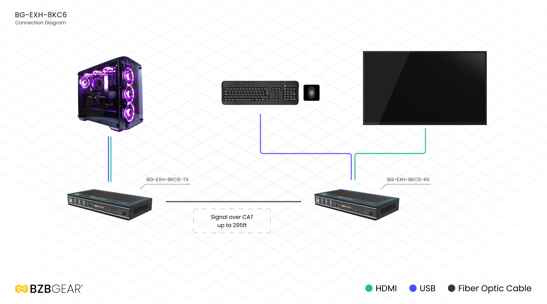 Enheten muliggjør også overføring av USB 2.0-signaler med konfigurerbare vert-/enhetsinnstillinger per enhet samt toveis Power over Cable (POC). For hjemme- eller kommersielle applikasjoner som krever langdistanse signaloverføring, fremstår BG-EXH-8KC6 som den ideelle 8K-signalløsningen.