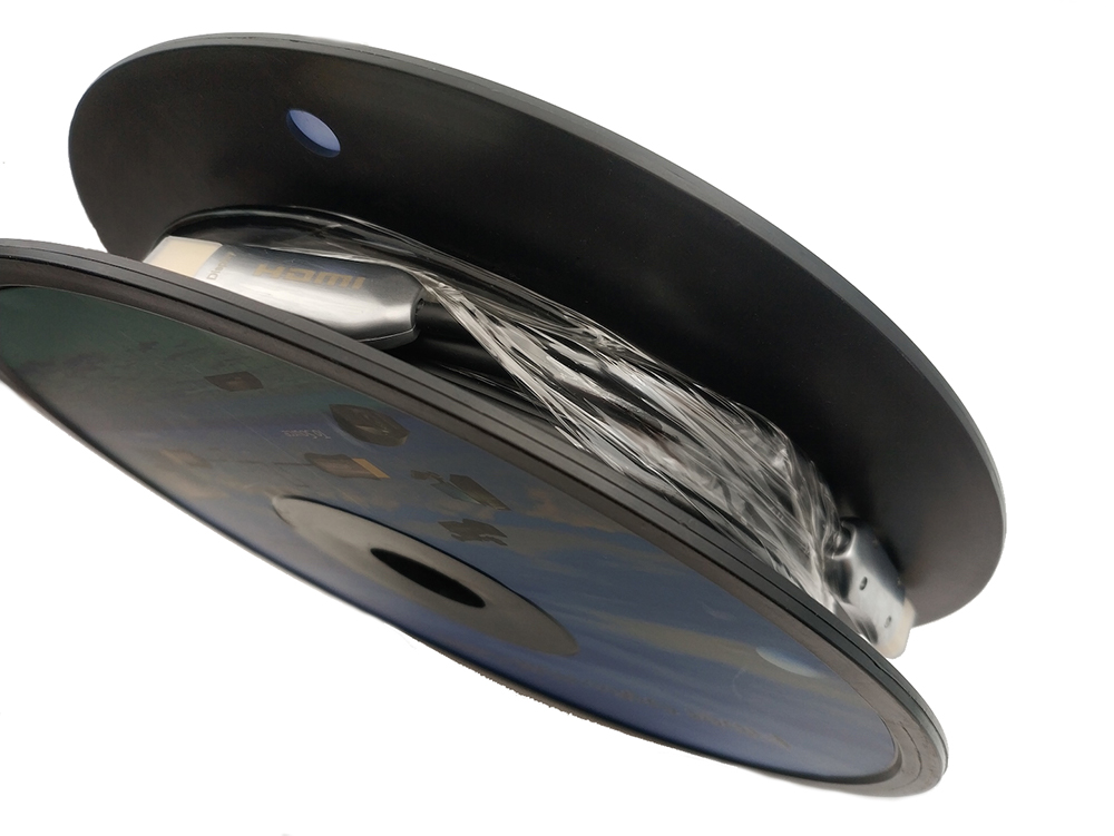 Denne kabelen er tilgjengelig i flere faste lengder opp til 50 meter, og de overholder RoHS-direktivet. De kortere variantene har kobberkabel og de lengre en hybrid fiberkabel mellom kontaktene.