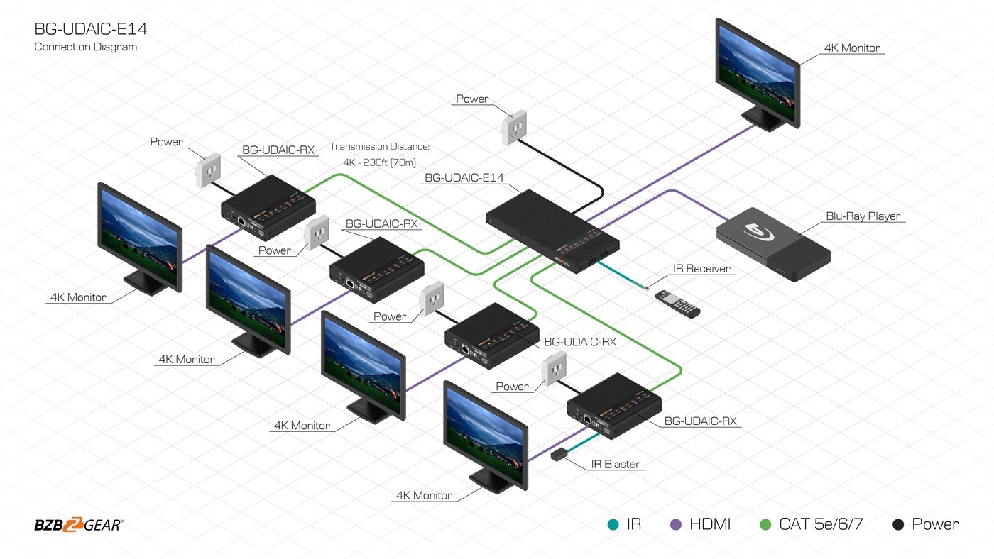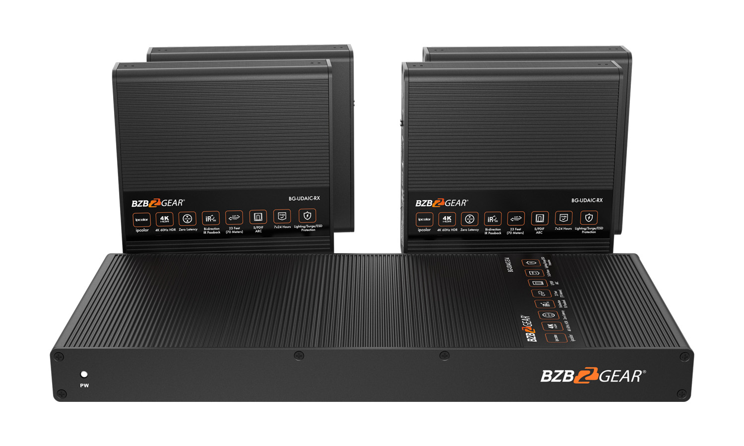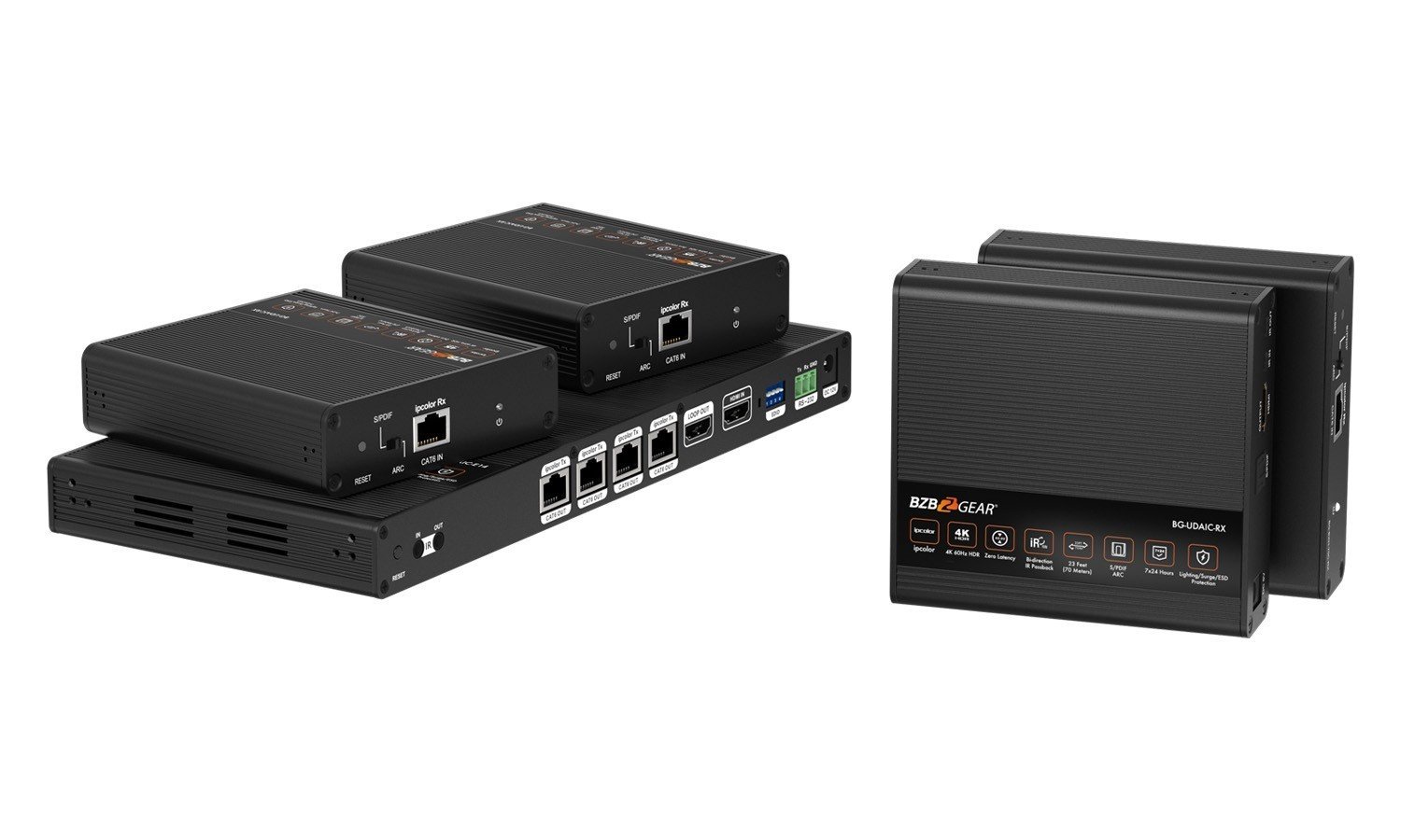 BG-UDAIC-E14 fra BZBGEAR er et høyytelses extender-/splitter-sett som gjør det mulig å distribuere ett HDMI-inngangssignal til opptil fire extender-utganger og forlenge signaler opptil 70 meter (230 fot) via CAT 6/6A/7-nettverkskabler. Denne løsningen er ideell for overføring av lyd- og videosignaler fra en kilde på lang avstand og gir pålitelig tilkobling med null forsinkelse uten at kvaliteten forringes. Les mer