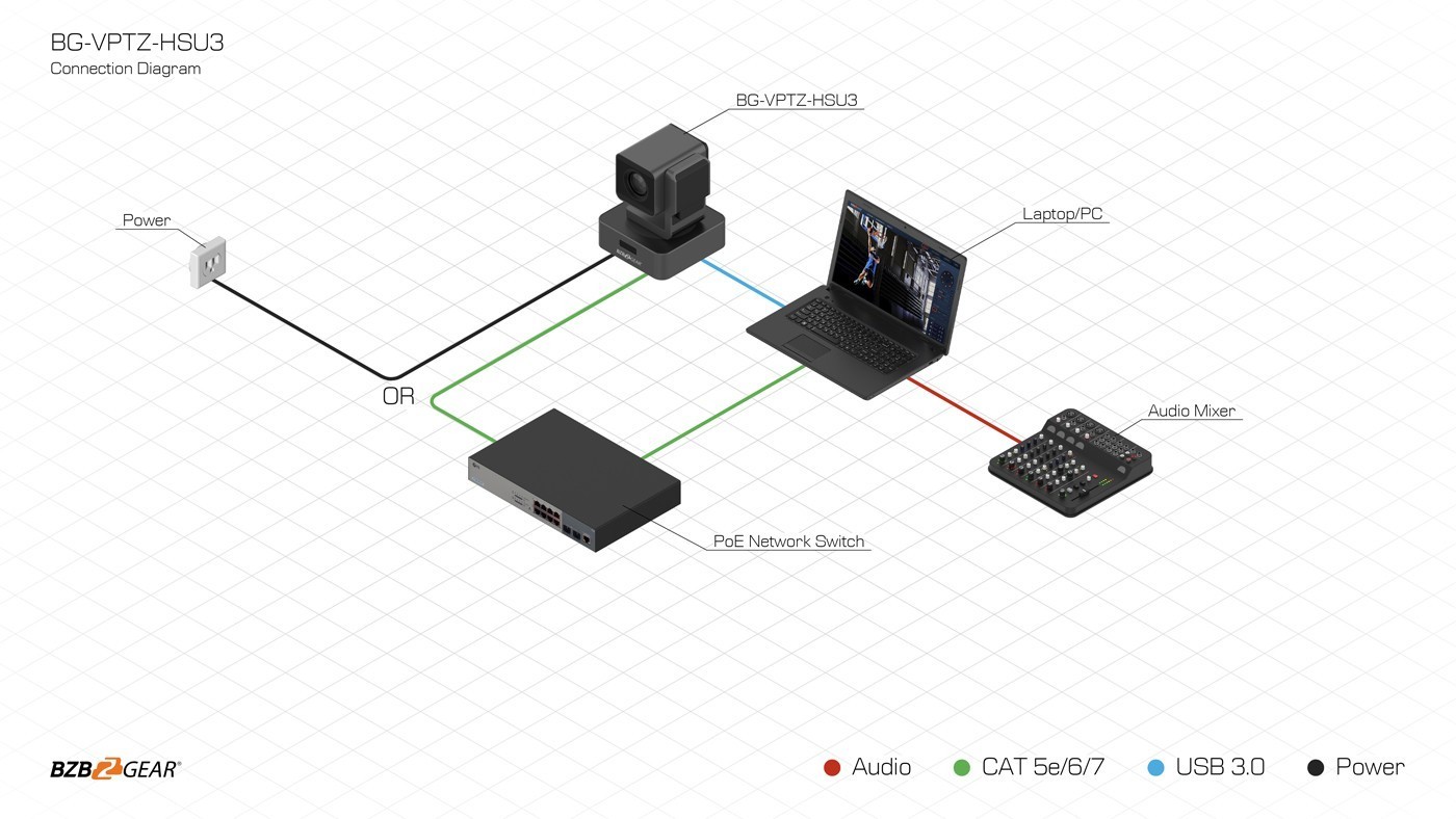 BG-VPTZ-HSU3 er et allsidig og kompakt PTZ-kamera i 1080P FHD med 10X/20X/30X zoom, flere utgangsgrensesnitt (HDMI, 3G-SDI, USB 3.0, IP-streaming) og en kompakt størrelse som passer perfekt til kontorer og klasserom. For avansert lyd/video over IP-streaming støtter BG-VPTZ-HSU3 NDI|HX2 med modellen BG-VPTZN-HSU3. BG-VPTZ-HSU3 brukes i videokonferanser, livestreaming, innholdsproduksjon, overvåkning og større arrangementer. Høyoppløselig bildefangst, lydintegrasjon og flere utgangsmuligheter forbedrer profesjonelle videokonferanser og engasjerende webinarer. Les mer