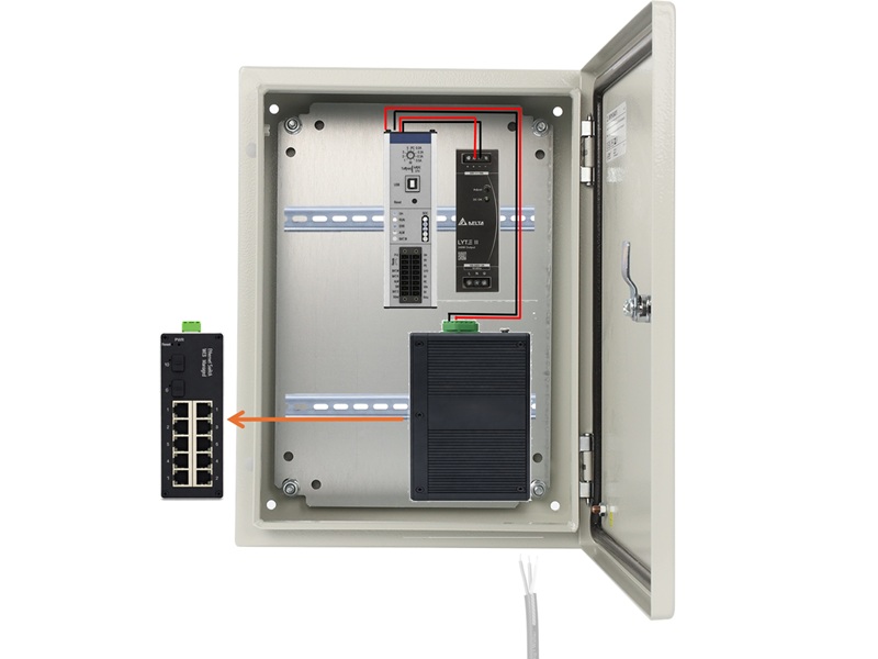 Takket være den innebygde 12–48V DC power booster-teknologien kan switchen drives direkte fra for eksempel solenergisystemer, batterier eller industrielle DC-nett – uten behov for spesialtilpassede strømforsyninger.