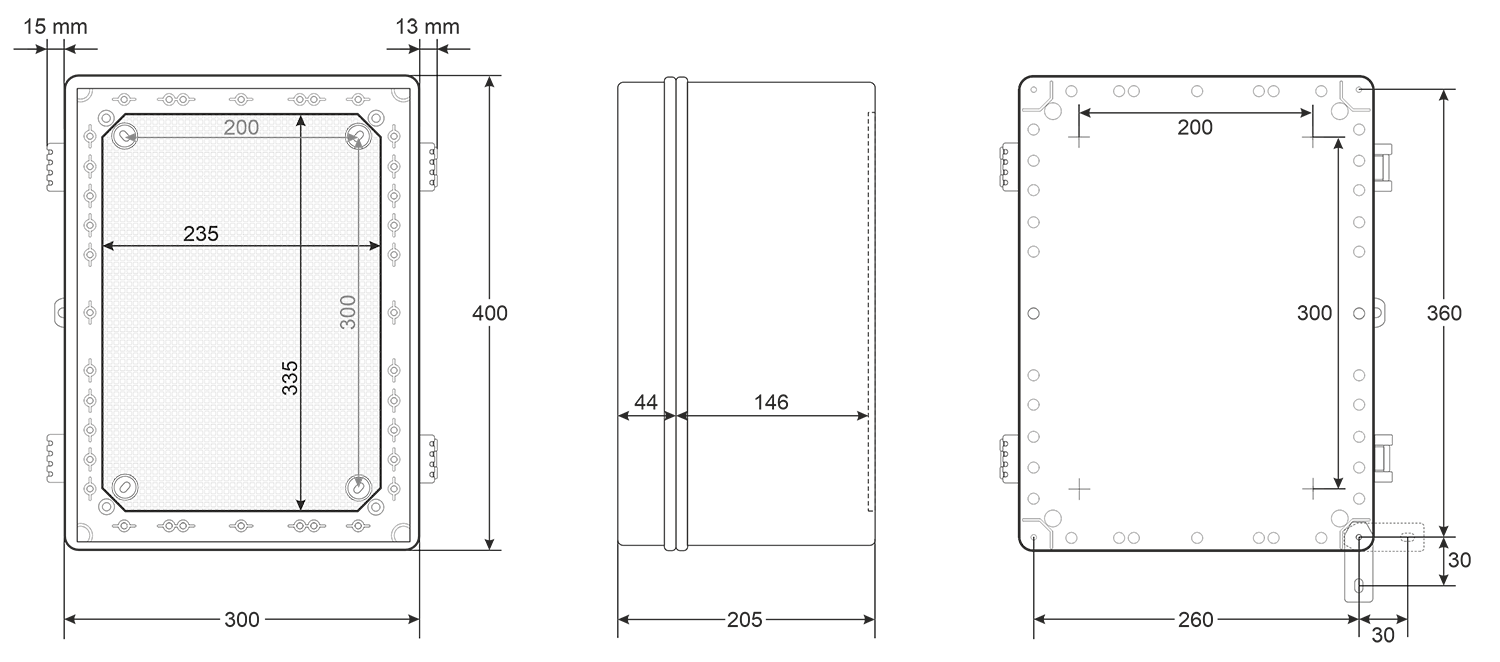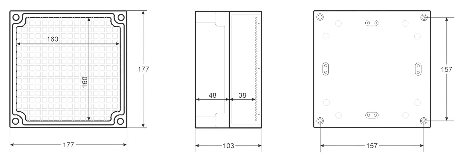Serien omfatter en rekke størrelser – fra 177x177x103 mm til hele 395x600x225 mm. Det gir installatører og teknikere frihet til å velge riktig innkapsling etter behov, enten det gjelder å beskytte et enkelt styrekort i et adgangssystem eller å samle hele strømfordelingen i en større installasjon. Alle modellene har perforert monteringsplate som gjør det enkelt å montere komponenter med presisjon.