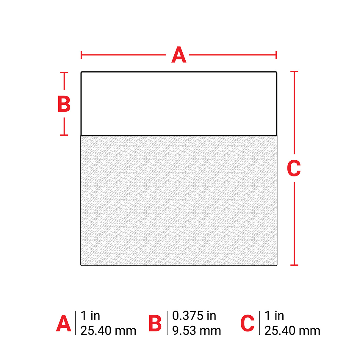 Leveres i et selvlaminerende format med et hvitt utskrivbart felt og et gjennomsiktig overlaminat som beskytter teksten.