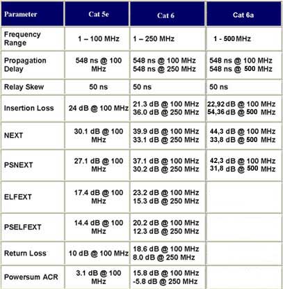 Som kjent gjelder for Cat.5E 100MHz båndbredde, for Cat.6 250MHz og dobbelt opp for Cat.6A, 500 MHz. Hvis man ser nøye, ser man også at lederne i RJ45-kontakten er plassert litt annerledes sammenlignet med tidligere. Dette er for å redusere såkalt ”alien crosstalk” mellom kabler som blir lagt i nærheten av hverandre.