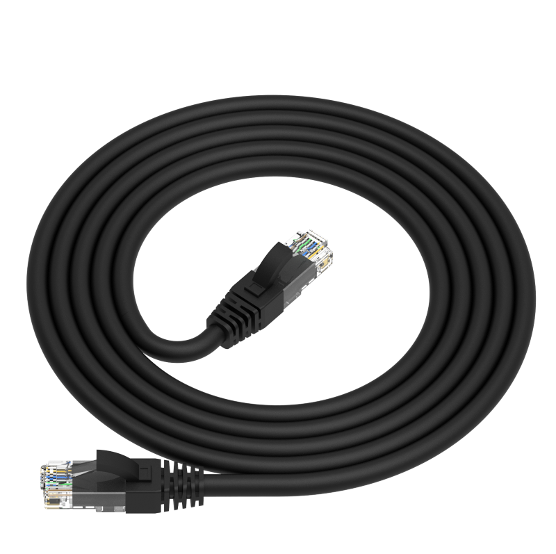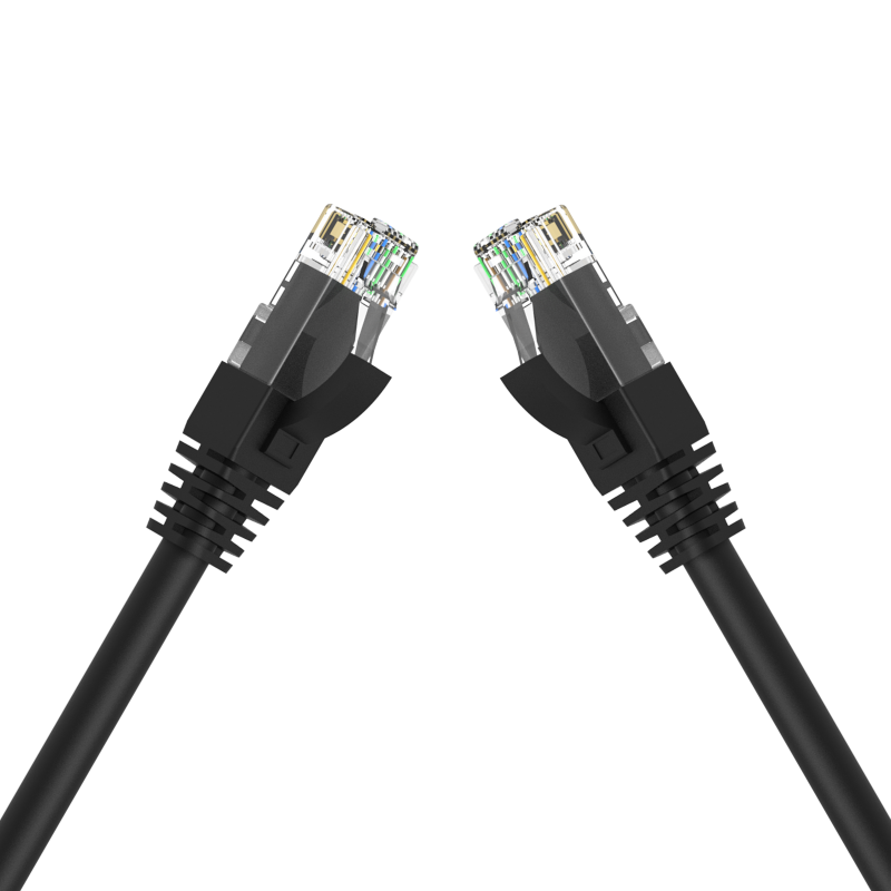 Svart CAT.6A nettverkskabel med helstøpte RJ45-kontakter. Yttermantel i PE plast gjør kabelen vanntett, UV-bestandig og egnet for utendørs bruk