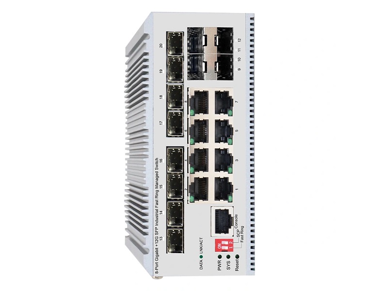 Managerad DIN 1Gb switch, 8 Rj45,12 SFP+