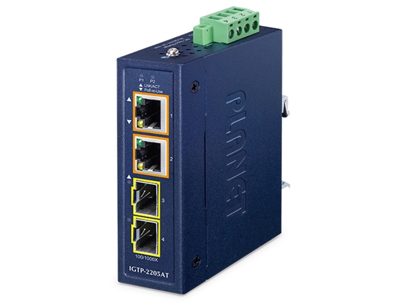 Takket være to SFP-plasser med støtte for 100/1000BASE-X kan IGTP-2205AT brukes i lange fiberforbindelser på opptil 120 km, noe som muliggjør fjernforbindelse til for eksempel PTZ-kameraer langs motorveier eller jernbanespor. Samtidig gir to PoE+-porter opptil 30 W per port, perfekt for å drive kameraer med varme, aksesspunkter eller VoIP-telefoner.
