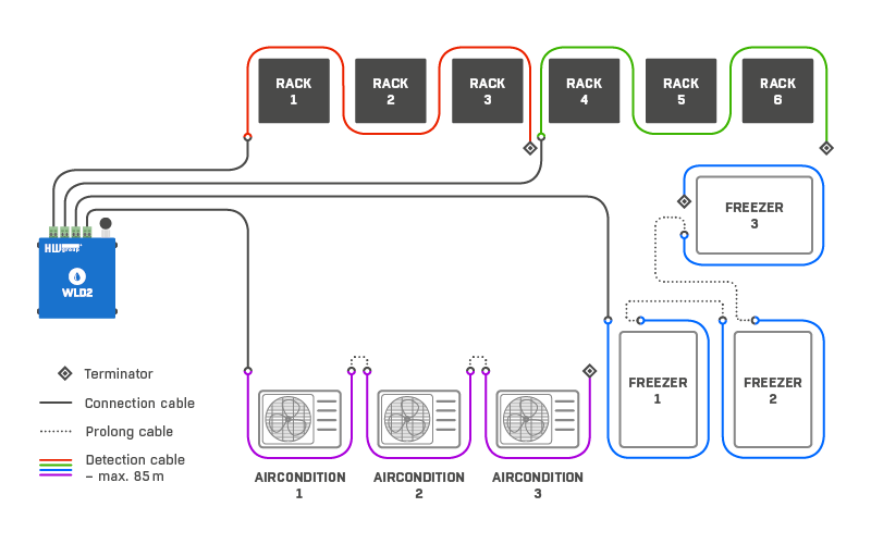 Unngå vannskader ved å bli varslet på riktig måte til riktig tid. Nye WLD2 har mulighet for soneinndeling der hver sone kan varsle separat via e-post, SNMP og også med SMS og telefonanrop (via tilbehør). På den måten vet du raskt nøyaktig hvor vannlekkasjen er, maksimal sensorlengde for hver sone er 185 meter fordelt på tilkoblingskabel samt sensorkabel, slik at du kan dekke et veldig stort areal med bare én WLD-enhet. Fleksibel installasjon, siden enheten støtter både Wi-Fi og kablet Ethernet og PoE. Les mer