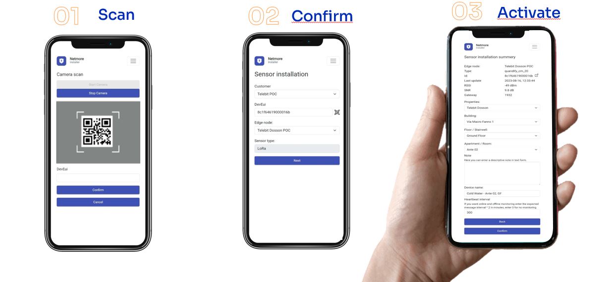 Med vår tjeneste DirektNet kobler du til og tar styringen over dine LoRaWAN-sensorer lynkjapt. Dekodet og klar til bruk, bare skann QR-koden vår med mobilen din. Hvis du ønsker å koble til tredjepartsapplikasjoner, er det en åpen API for eksport av harmoniserte data.