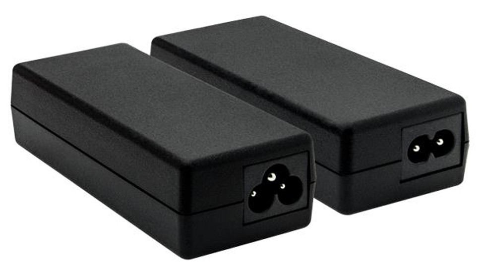 Leveres med 1,2 m lang tilkoblingskabel med C6-kontakt mot strømforsyningsadapteren og DC-kontakt med 2,1 mm senterpinne (5,5 mm ytterdiameter).