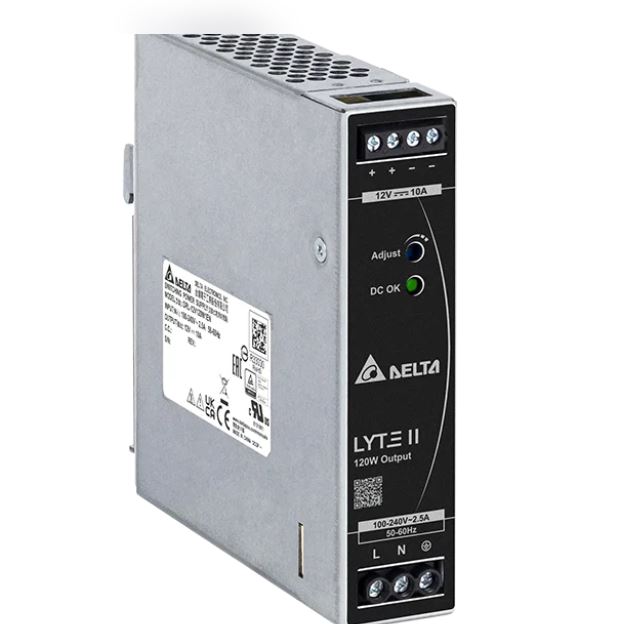 Med en uteffekt på 120 W og en strømstyrke på 10 A leverer denne enheten stabil 12 V strøm for krevende applikasjoner. Den støtter et bredt inngangsspenningområde (90–264 Vac) og kan operere fra -30 °C til +70 °C, med mulighet for kaldstart ned til -40 °C. Den har høy virkningsgrad, lavt tomgangsforbruk og oppfyller DOE VI-kravene for energieffektivitet.