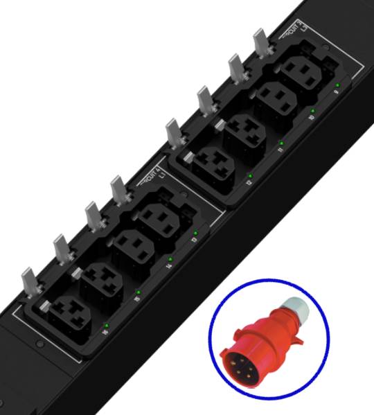 Trefasekraft gir betydelig mer effekt per rack enn enfasekraft ved samme strømstyrke. PX4-5917-E7V2 mottar 415 V trefasekraft og distribuerer den som 230 V enfasekraft til 24 uttak, hvorav 12 med HDOT Cx-teknologi.