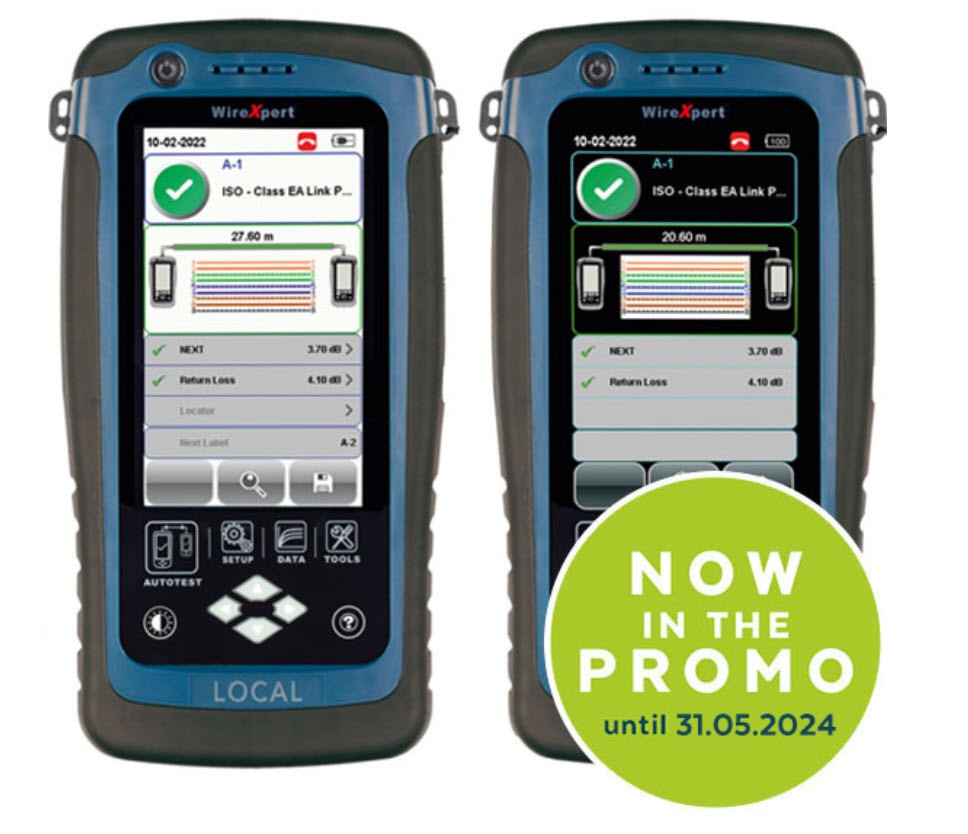 WireXpert gir sertifisering i henhold til Cat 6/Cat 6A/Class EA og støtter sertifisering av fiberoptiske installasjoner som opererer ved 850/1300nm og 1310/1550nm. En rekke adaptermoduler for kabeltesting er tilgjengelige for koaksial, M12-D-kodet og X-kodet.