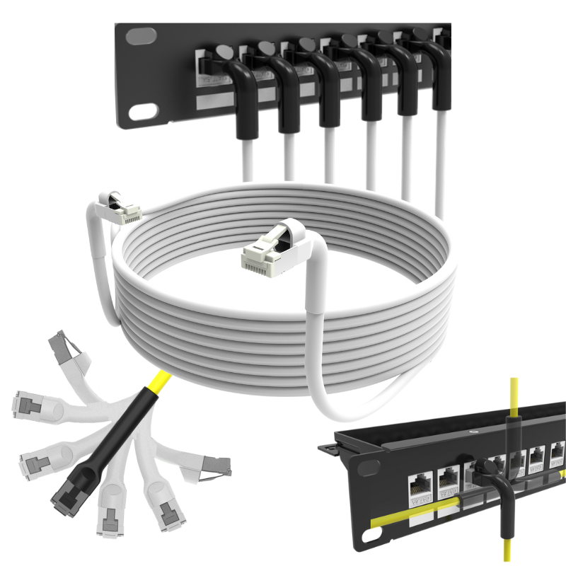 I motsetning til tradisjonelle vinklede patchkabler, som bare er støpt i én fast retning (for eksempel oppover eller til venstre), kan FlexPatch formes akkurat slik du trenger. Det betyr at du ikke lenger trenger å ha flere varianter på lager – én FlexPatch løser de fleste situasjoner. Det er ikke bare praktisk, det sparer også tid ved installasjon og forenkler lagerholdet.
