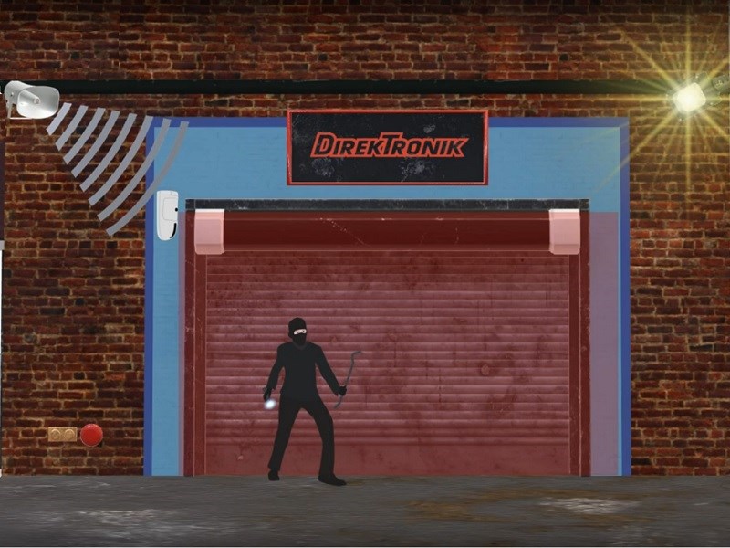 Rørelsesdetektorer kobles til fast eller blinkende lys samt høyttalere som f.eks. spiller av en forhåndsinnspilt melding for aktivt å påkalle oppmerksomhet hos uvedkommende personer. Kamerasystem kan da, når dette skjer, spille inn hendelsen via en inngang i systemet (I/O-trigging), og det kan også sende en alarm til en alarmsentral (for dette trengs en alarmsender).